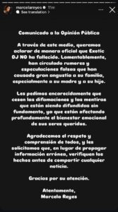 Luego de estar por unas horas en la capital del Valle del Cauca, fue trasladado a Bogotá donde fue intubado y tuvo que ser conectado a varios equipos médicos para mantenerlo controlado y esperar a que su recuperación fuera óptima. Sin embargo, en la tarde del 7 de noviembre, luego de someterse a una delicada cirugía, comenzó a circular información en redes sociales y en los principales medios de comunicación que confirmaban la supuesta muerte del DJ, din embargo, Marcela Reyes lo desmintió en sus redes sociales.